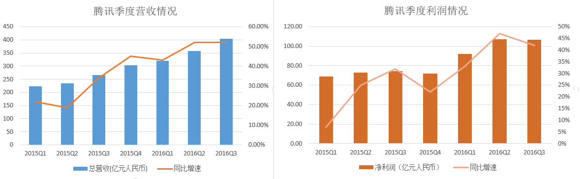 今日晚间,腾讯发布今天公布未经审核的第三季度财报。报告显示,腾讯三季度总收入同比增长52%,增速与上季度持平;净利润增速有所下滑。